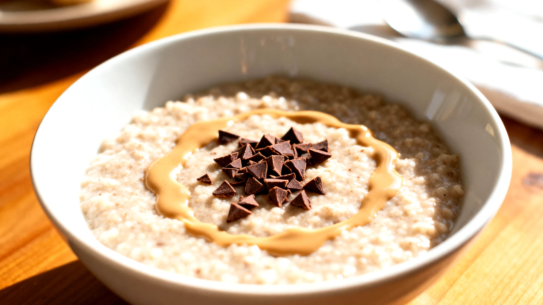 Die Flavonoide in Kakao können die Durchblutung verbessern und die Sauerstoffversorgung der Muskulatur optimieren. Der Magnesiumgehalt unterstützt die Muskelregeneration und beugt Krämpfen vor. Ein bis zwei Esslöffel Kakao-Nibs verleihen dem Porridge eine dezente Bitterkeit und einen angenehmen Crunch, ohne die Mahlzeit zu überladen.